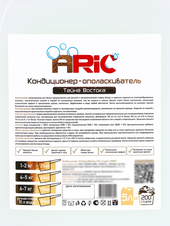 Кондиционер-ополаскиватель ARIC «Тайна востока» 5 л — это идеальное завершение стирки, которое придает вашим вещам мягкость, ухоженный вид и неповторимый аромат восточной роскоши.