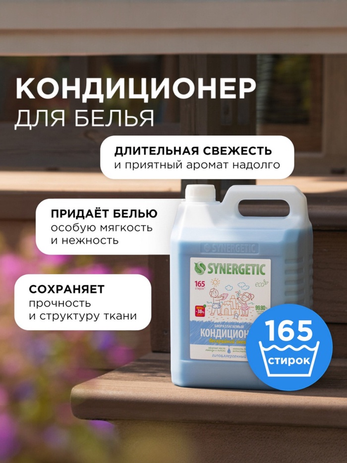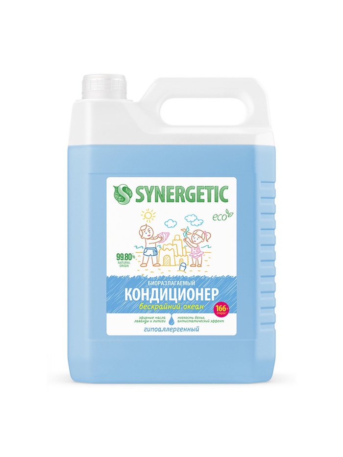 Биоразлагаемый кондиционер-ополаскиватель для белья SYNERGETIC "Бескрайний океан" – высокоэффективное средство, бережно ухаживающее за всеми типами ткани, в том числе деликатными, и придающее особую мягкость и нежность белью после стирки.