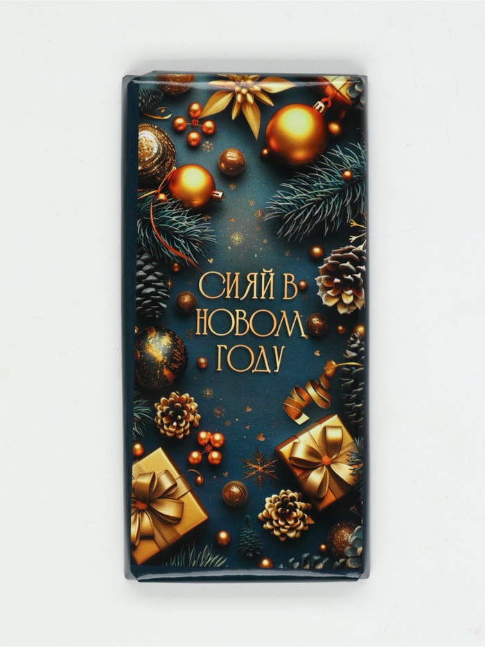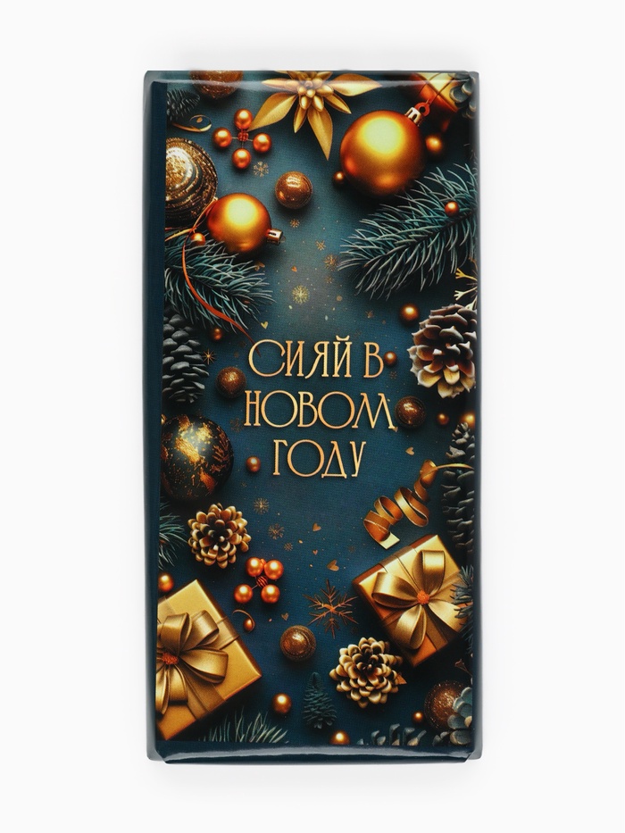 Поздравьте всех с наступающим праздником с кондитерской плиткой "Сияй в Новом году!" – настоящая сладость, наполненная новогодним духом и радостью! Эта удивительная плитка сочетает в себе великолепие шоколада и яркие праздничные детали, создавая поистине волшебное угощение.