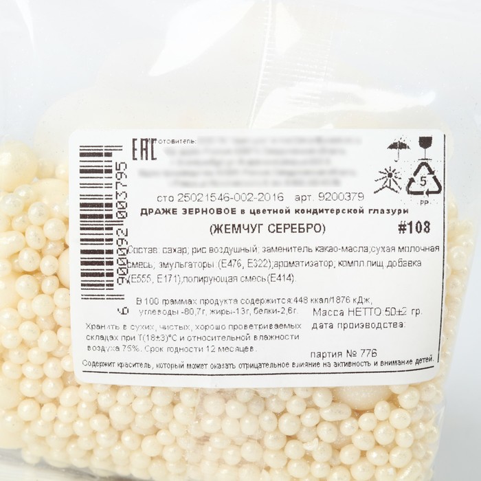 Состав: сахар; рис воздушный (крупа рисовая, мука пшеничная); заменитель какао-масла нелауринового типа нетемперируемый (фракционированное, частично гидрогенизированное пальмовое масло); сухая молочная смесь (сыворотка сухая, сухое обезжиренное молоко, сухое цельное молоко, лактоза, молочный протеин); эмульгаторы: (Е476, Е322), ароматизатор «Ванилин»; комплексная пищевая добавка(антислеживатель Е 555, краситель Е171); комплексная пищевая добавка-глазирователь (глюкозный сироп, стабилизатор (Е 414)).