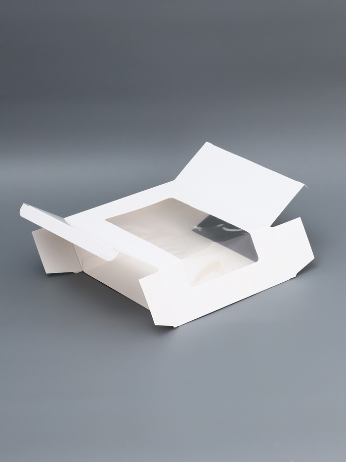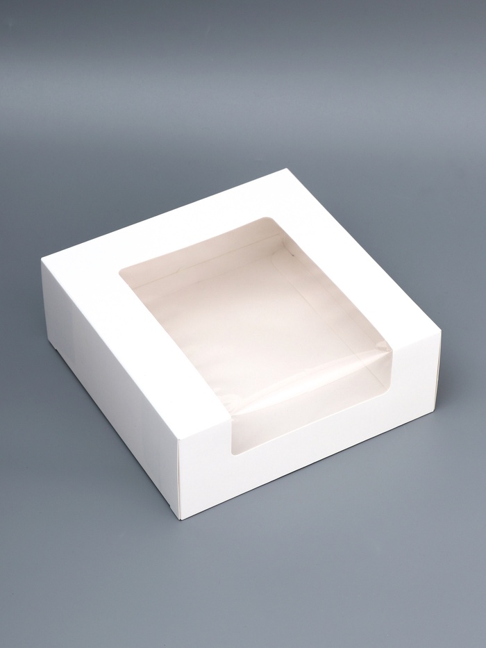 Универсальная упаковка для выпечки и десертов! Белая кондитерская коробка с окном 18×18×7 см — это практичное решение для переноски и презентации различных сладостей. Прозрачное окно демонстрирует содержимое, а компактный размер подходит для разных видов выпечки.