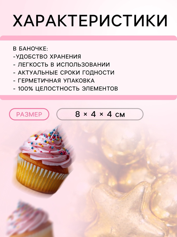 Декоративная кондитерская посыпка весом 50 гр. в упаковке идеальна для декорирования свадебного торта, а также пирожных, кексов, рулетов и капкейков для любого торжественного мероприятия.
