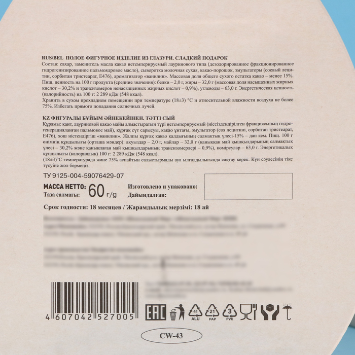 Кондитерское изделие "ХВ" в яркой и красочной упаковке принесет радость и удовольствие всем любителям сладостей. Необычный дизайн этой классической сладости cделает ее оригинальным подарком на Пасху или на любой другой праздник.