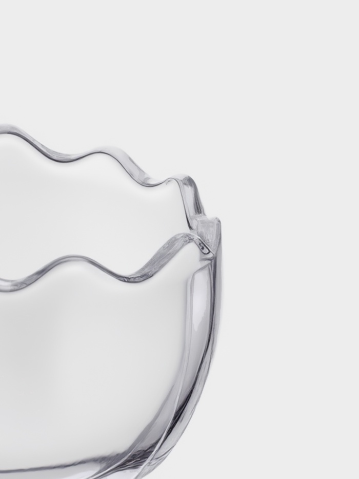 Форма ёмкости уже создаёт настроение, а прозрачность добавляет лёгкости. Используйте для конфет, оливок, соусов, ягод в сиропе или даже как мини-вазу для веточки зелени.