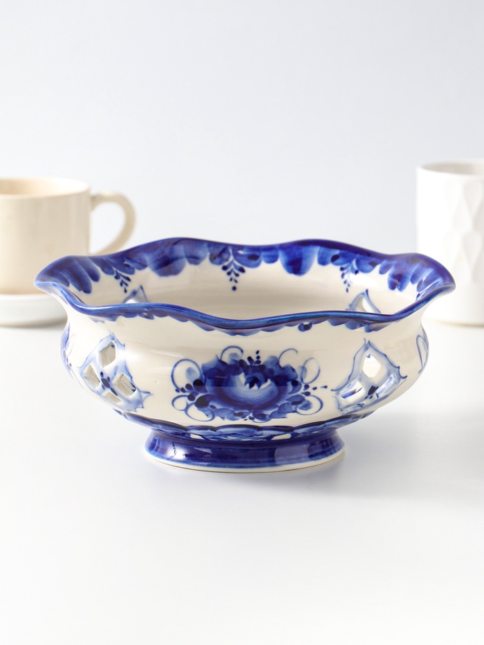 Конфетница «Утро» авт.Рогов, 1,1 л, 21х9см, гжель
