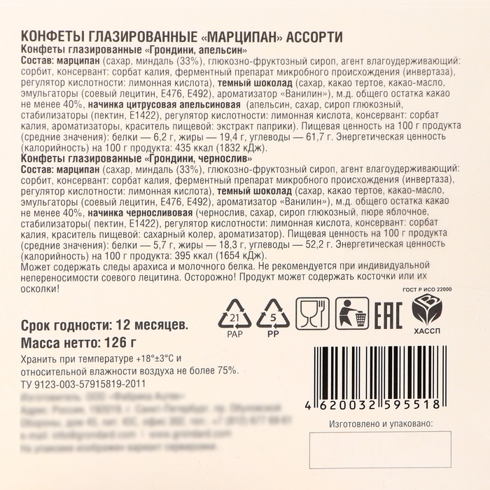 Марципановые конфеты - это не просто сладость, это настоящий волшебный подарок, который принесет радость и удовольствие в самые долгожданные моменты праздничного сезона. Конфеты глазированные с начинкой из чернослива и апельсина никого не оставят равнодушным, и непременно подарят своему счастливому обладателю неповторимое наслаждение.
