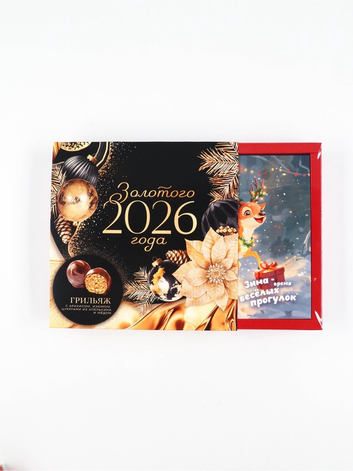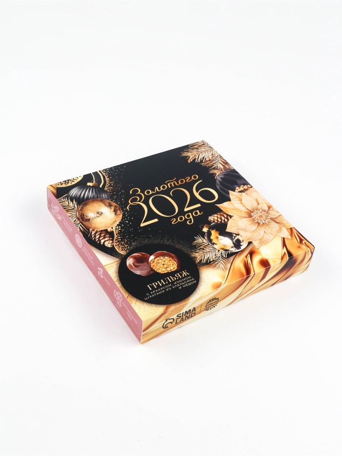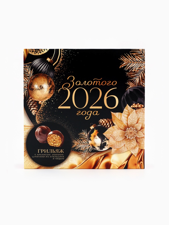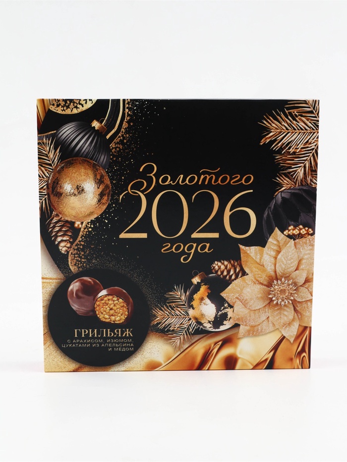 Конфеты грильяж «Новый год 2026» с арахисом, изюмом, цукатами из апельсина и мёдом, в коробке, 135 г