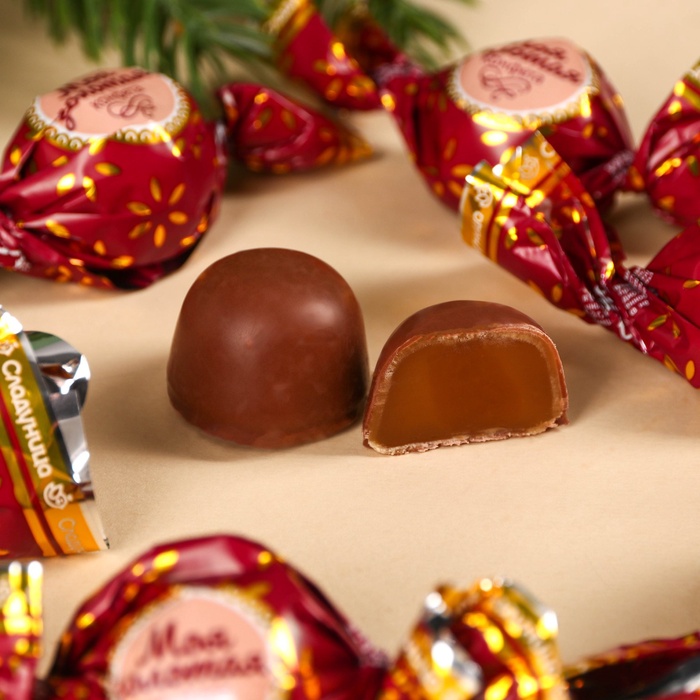 Состав: сахар, патока, молоко цельное сгущённое с сахаром (нормализованное молоко, сахар (сахароза, лактоза)), глазурь кондитерская (сахар, заменитель масла какао нетемперируемый лауринового типа (рафинированное дезодорированное пальмоядровое масло, эмульгаторы: Е492, лецитин соевый), мальтодекстрин, молоко сухое обезжиренное, масло кокосовое рафинированное дезодорированное, какао-порошок, какао тёртое, эмульгатор - лецитин соевый, ароматизатор), заменитель молочного жира (рафинированные дезодорированные растительные масла и жиры (пальмовое, подсолнечное пальмоядровое), эмульгатор Е471), соль, ароматизаторы.