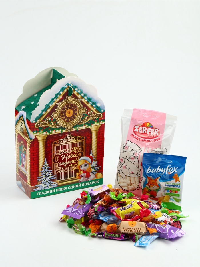 Состав: сахар, патока, масла растительные (антиокислитель: токоферолы, концентрат смеси), крахмал кукурузный, стабилизатор – гуммиарабик, влагоудерживающие агенты: сорбитовый сироп, лактат натрия; регуляторы кислотности: кислота молочная, лимонная кислота; желирующий агент – пектины, концентрированные соки яблока, чёрной моркови, красители: куркумин, экстракт паприки, синий блестящий FCF; ароматизаторы, эмульгатор – лецитин соевый. Может содержать диоксид серы, следы глютена, яиц, молока, арахиса, орехов и продуктов их переработки.