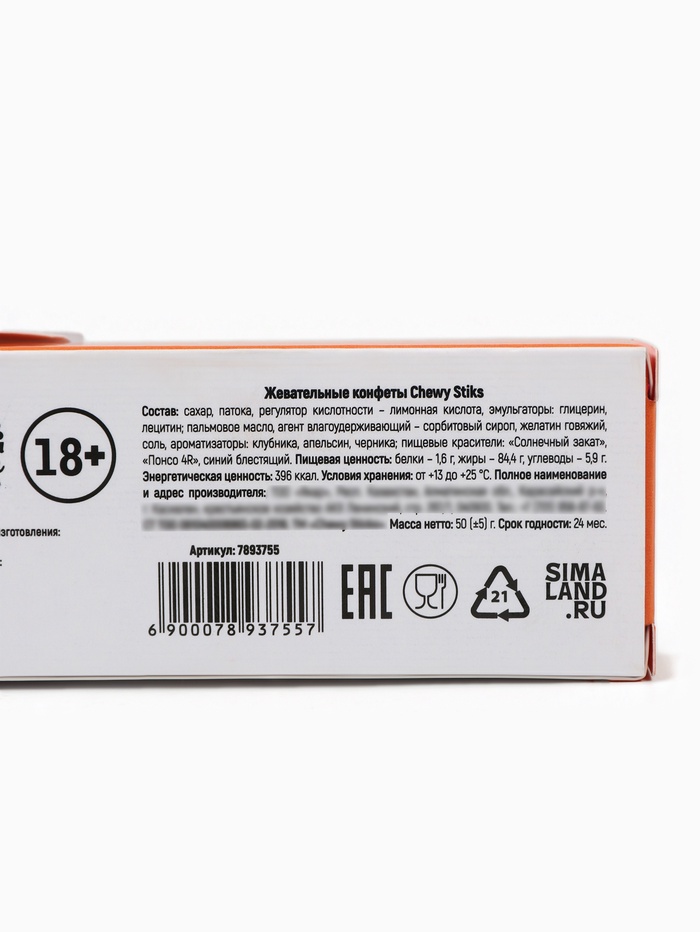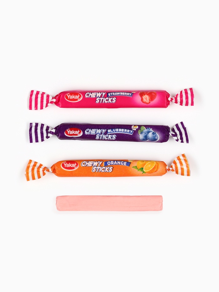 Состав: сахар, сироп глюкозный, масло растительное (пальмовое), регулятор кислотности (лимонная кислота), желатин говяжий, концентрат сока клубники (0,3 %), концентрат сока вишни (0,4 %), концентрат соков апельсина и лимона (0,2 %), эмульгаторы (Е471, лецитин подсолнечный), ароматизатор искусственный, идентичный натуральному, краситель (красный свекольный, Е160а).