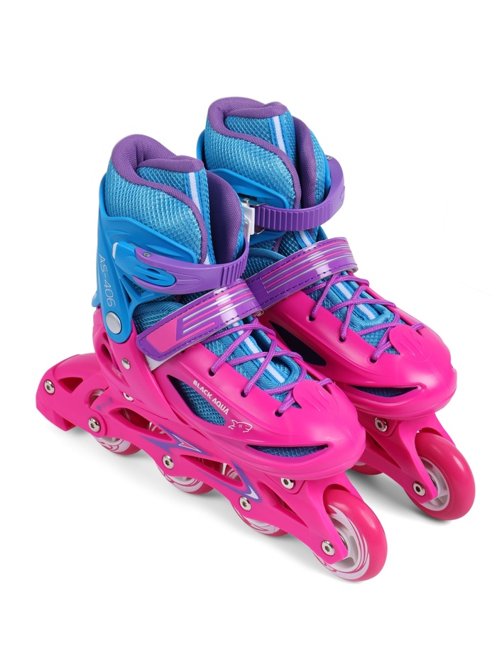 Коньки раздвижные BlackAqua, р. 35-38, для фитнеса, с роликовой платформой, цвет фуксия
