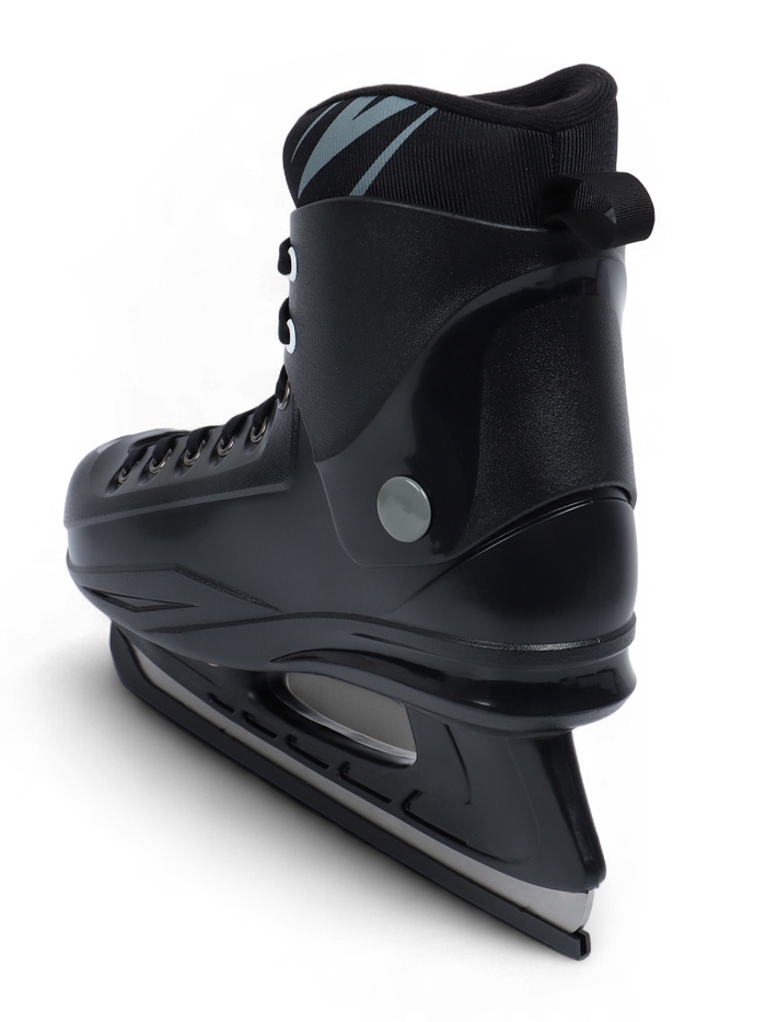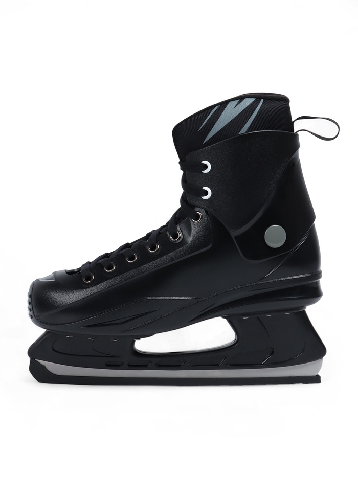 - Основа ботинка: пластик. Жёсткий материал создаёт надёжную защиту от попадания шайбы. Пластиковый носок обеспечивает стойкость изделия к порезам и истиранию.