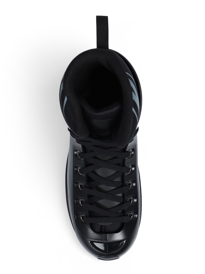 • Основа ботинка: пластик. Жёсткий материал создаёт надёжную защиту от попадания шайбы. Пластиковый носок обеспечивает стойкость изделия к порезам и истиранию.