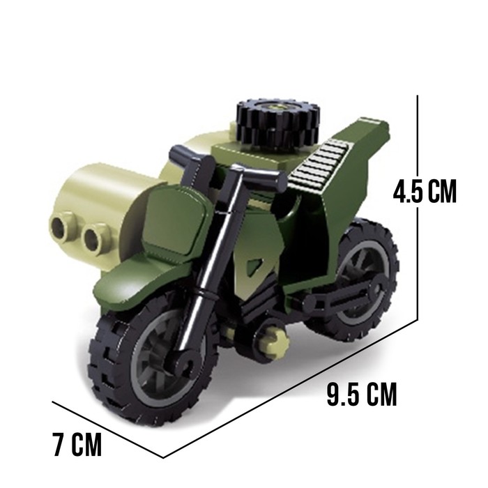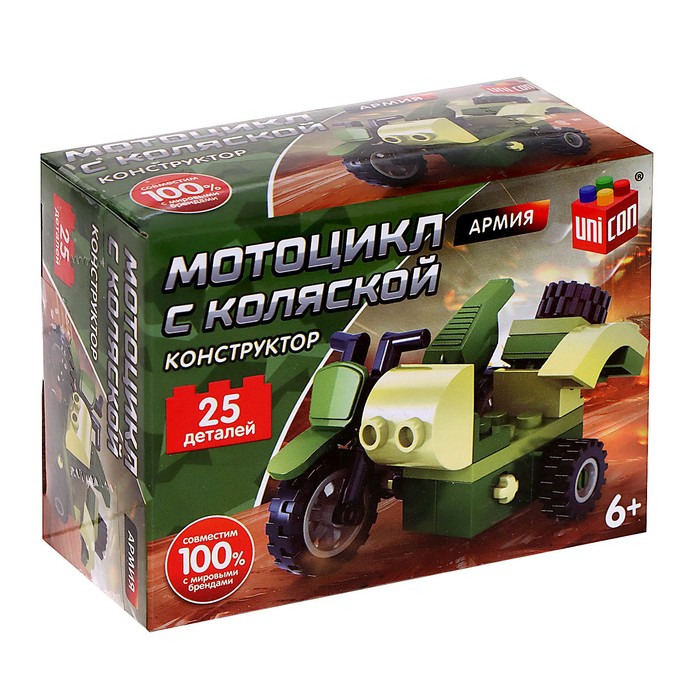 Соберите штурмовой мотоцикл с коляской торговой марки UNICON и пополните автопарк военного транспорта. С таким конструктором удобно расширять кругозор ребёнка и развивать другие полезные навыки.