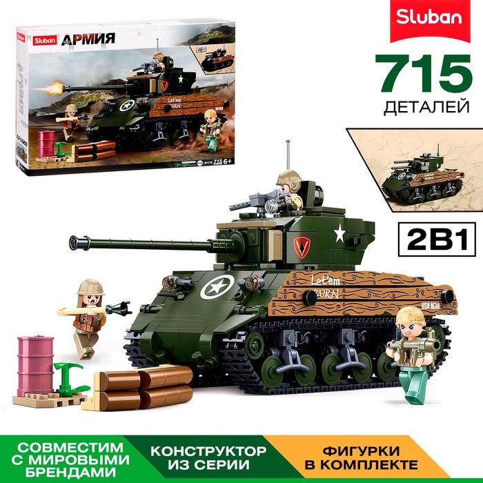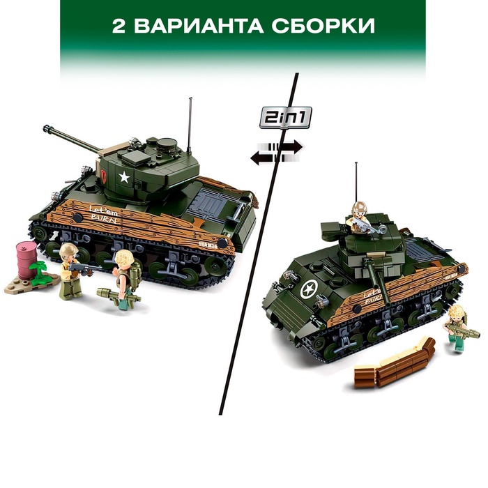 Конструктор «Армия. Танк» подойдёт в качестве подарка на праздник или дополнения к коллекции исторической боевой техники. Увлекательный набор позволит собрать 2 варианта танка с вращающейся башней! Во время сборки ребёнок будет развивать творческое мышление и инженерные навыки.