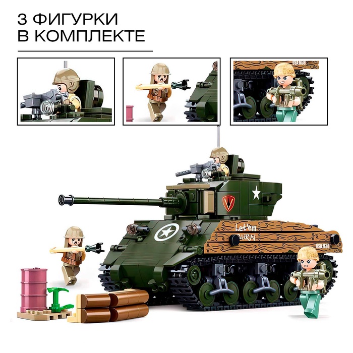 - В наборе 715 деталей и 3 фигурки солдатиков.