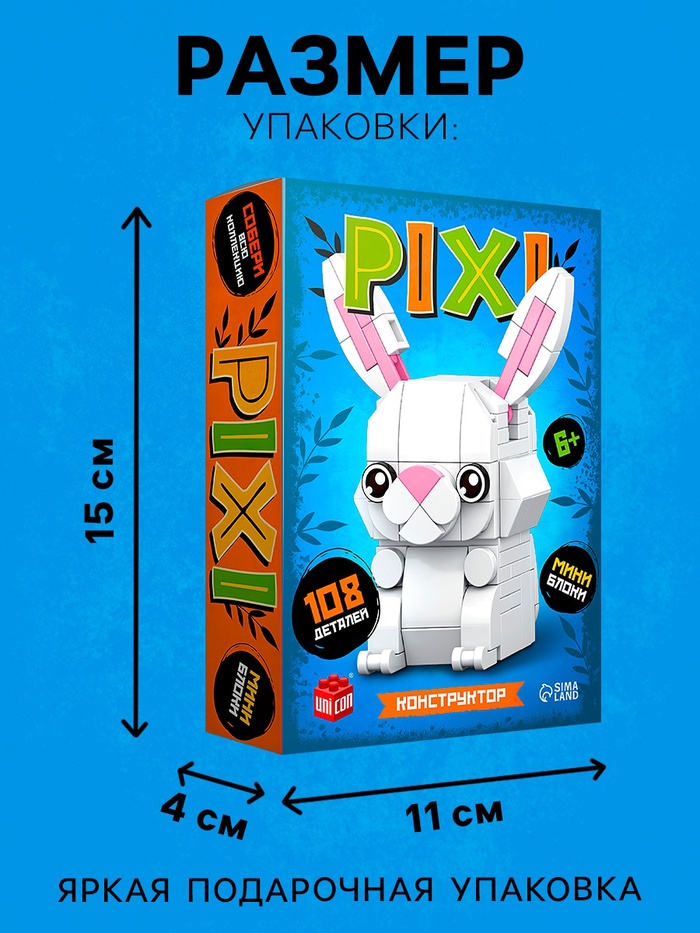 Конструктор «PIXI. Зайка» — это увлекательный набор для детей от 6 лет, состоящий из 108 деталей. С его помощью ребенок может создать яркую модель зайки, развивая при этом мелкую моторику и творческое мышление. Мини блоки легко умещаются в ладошке, что позволит ребёнку не только увлечённо играть, но и развиваться!