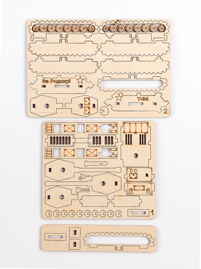 - Детали изготовлены из берёзовой фанеры, что делает их прочными и безопасными.