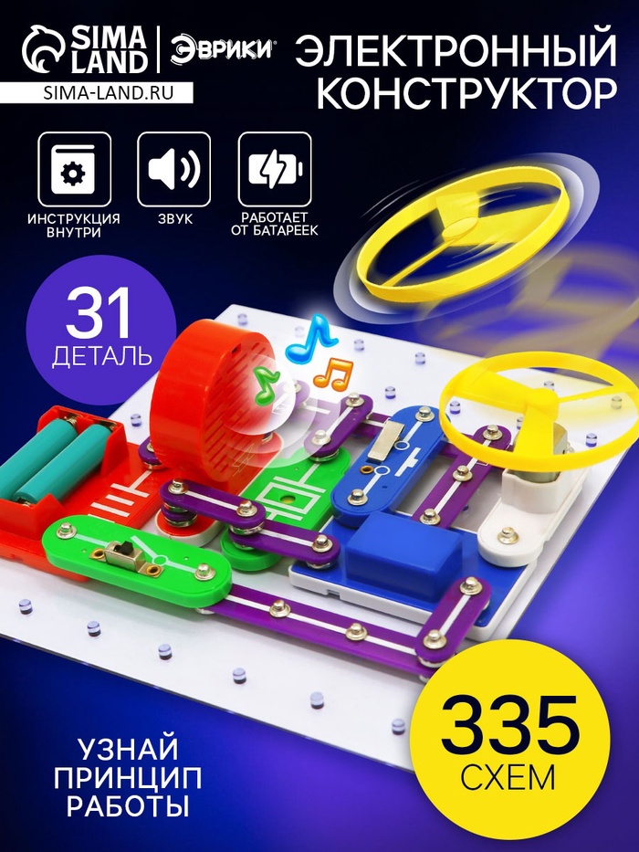 Экспериментируйте и создавайте электрические устройства самостоятельно. В наборах вы найдёте подробную инструкцию с описанием каждого шага. Конструктор «Эврики» предназначен для сборки различных простых электронных схем. Соединение элементов между собой производится с помощью специальных кнопочных креплений — это удобно, легко и быстро. Собранные схемы не требуют настройки и начинают работать сразу.