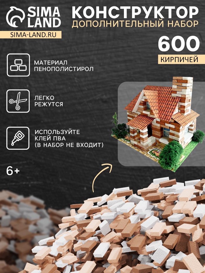 - В наборе 600 кирпичиков, подходящих для создания построек любой сложности.