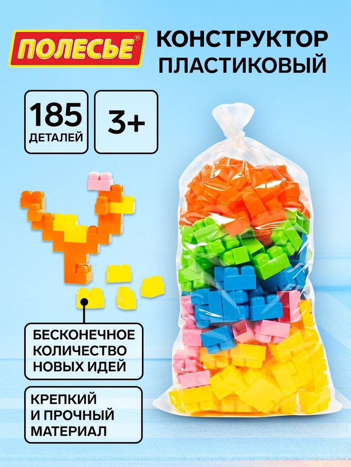 Первый конструктор для маленьких ручек! Детский конструктор 185 деталей — идеальный набор для первого знакомства с миром конструирования. Крупные классические детали удобно ложатся в руку, помогая малышам от 3 лет развивать моторику и пространственное мышление.