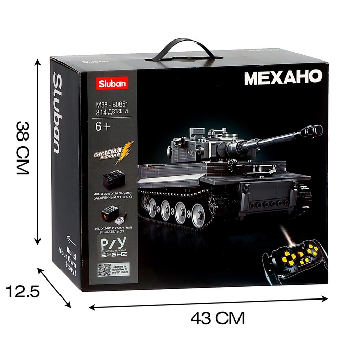 - Танк работает от аккумулятора (есть в комплекте), пульт управления работает от батареек типоразмера ААА (не входят в комплект).