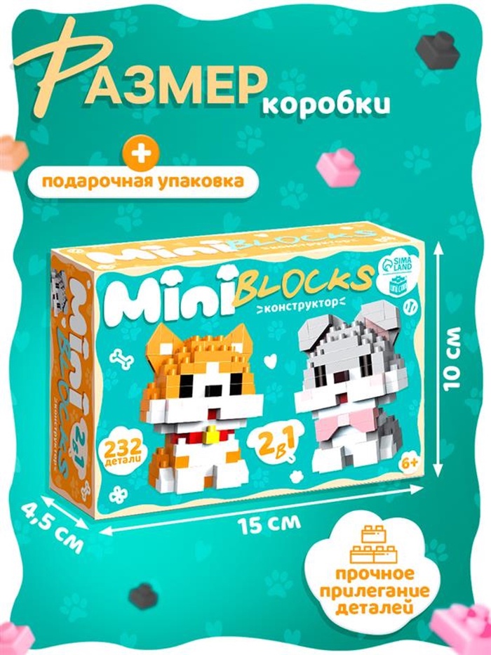 Создай целую компанию верных друзей из мини-блоков! Конструктор Mini Blocks «Собачки» — это набор для сборки двух забавных щенков. Ребёнок сможет построить рыжую и серую собачек, а после использовать их для игр или украшения комнаты.