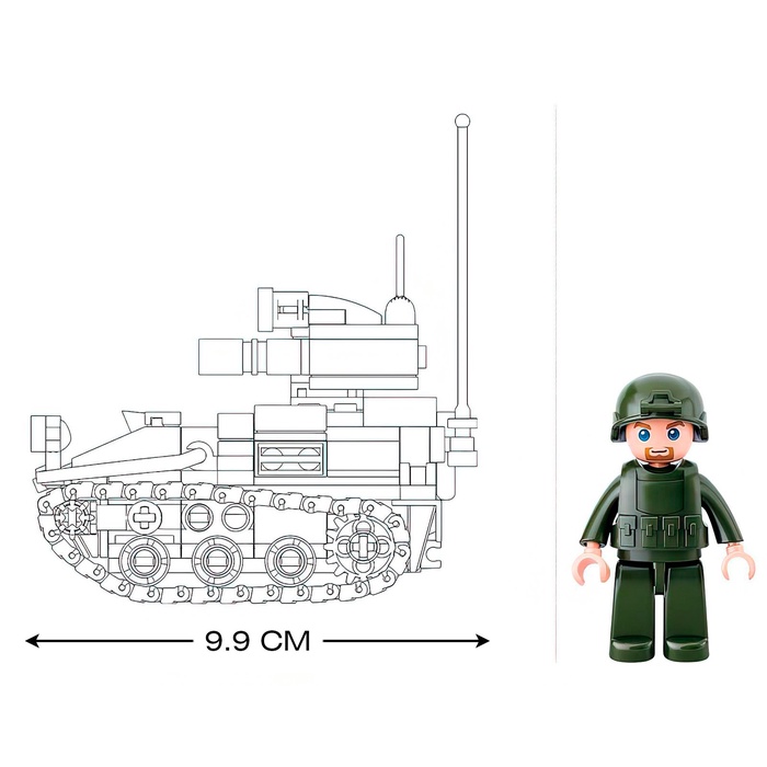 - Фигурка в комплекте: В набор входит мини-фигурка солдата, которая делает игру более реалистичной. Ребенок сможет разыгрывать сценарии боевых операций, развивая воображение.