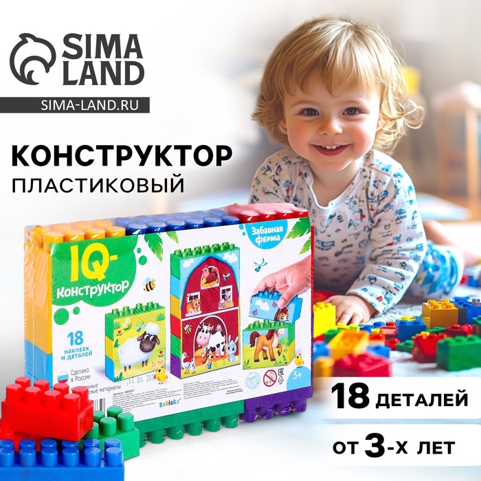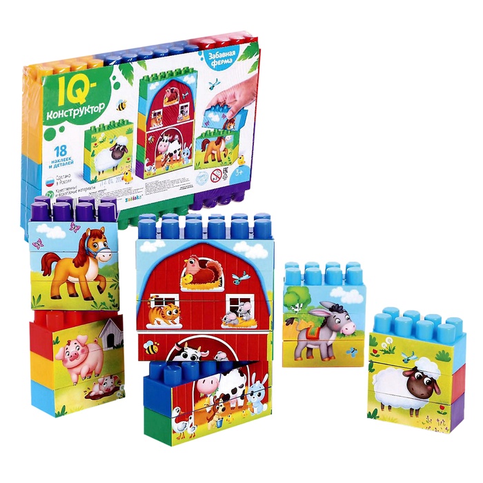 Красочный конструктор «Весёлая ферма» привлекает внимание и стимулирует познавательную активность малышей. Ребёнок в игровой форме познакомится с основными цветами, научится различать предметы по величине и считать их. Будет знать, как выглядят домашние животные и зверята с фермы, и правильно произносить их название.