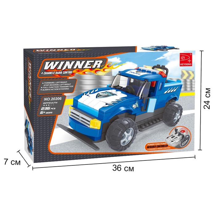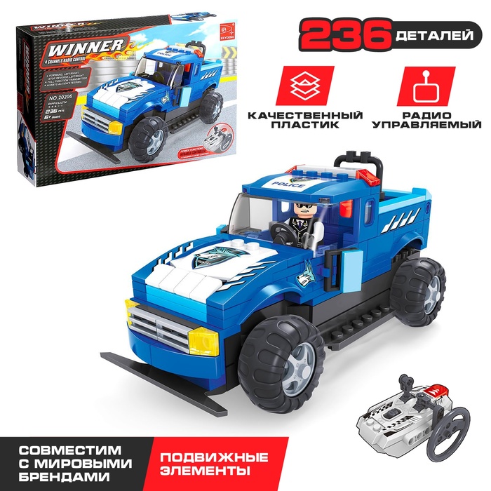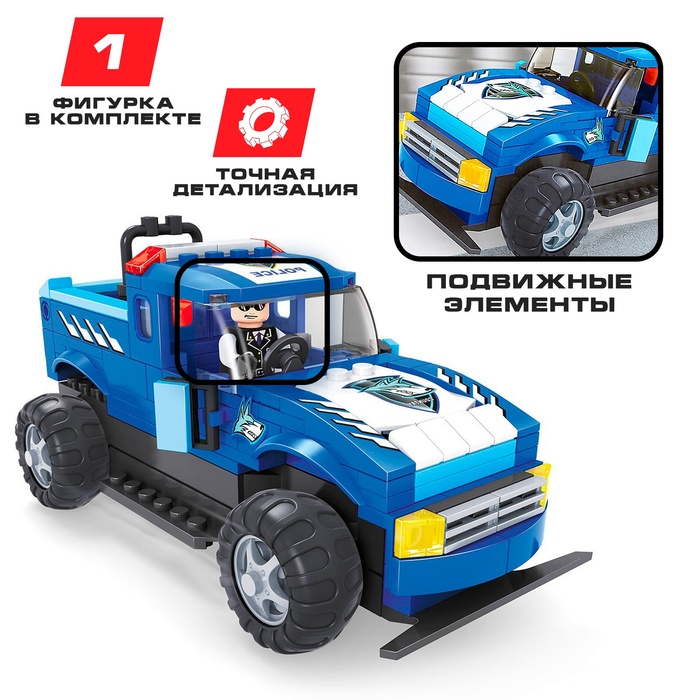 Соберите мощный полицейский внедорожник и управляйте им с пульта! Конструктор на радиоуправлении — это увлекательное сочетание сборки и активной игры. Подойдет для детей от 6 лет.