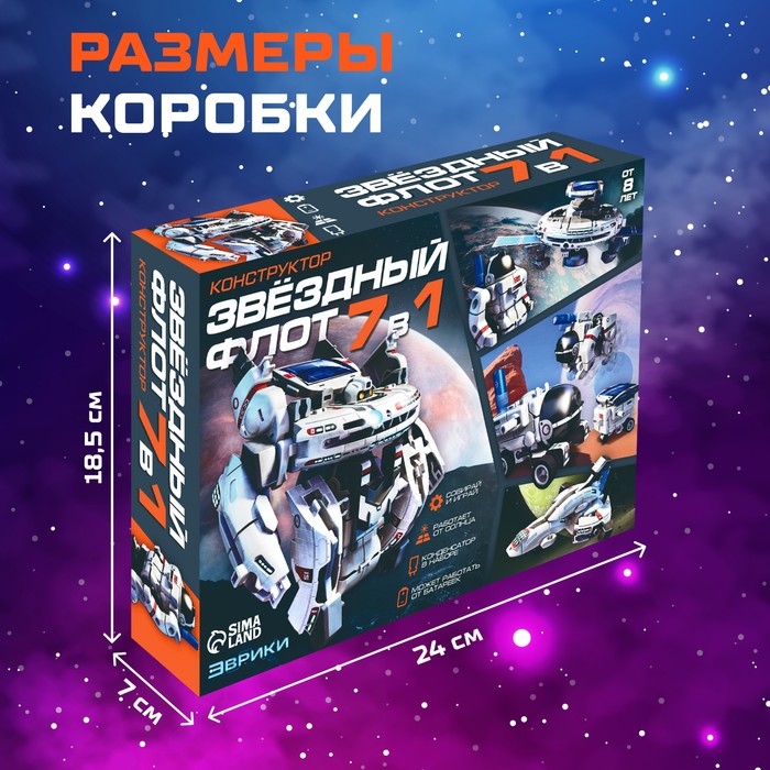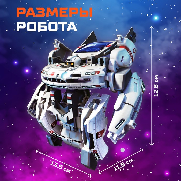 Создайте свой звёздный флот: соберите космический шаттл, станцию, межгалактического пса, астронавта и киберботов и отправляйтесь покорять Вселенную. Разнообразные модели, работающие от альтернативных источников энергии, покорят юного изобретателя. Ребёнок научится трансформировать модули и заряжать их от прямых солнечных лучей.