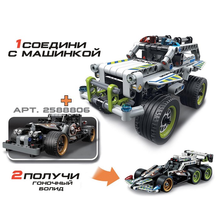 Соберите свою гоночную машинку с инерционным механизмом! Этот конструктор создан для умелых ручек и любознательных умов. Секрет: соедините эту модель с другой и получите эксклюзивную третью версию машинки.