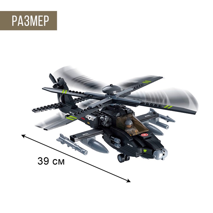 Набор содержит 293 детали и позволяет собрать ударный летательный аппарат и фигурку солдата. Подвижные элементы разнообразят игровые сюжеты, мальчишка выстроит стратегию и одержит победу в битве!