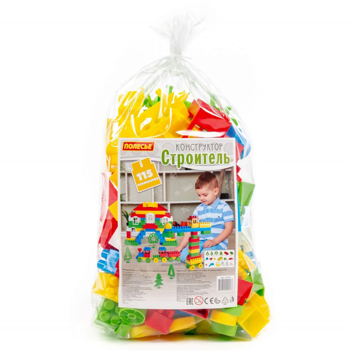- 115 элементов для строительства: Детали разной формы и размера позволяют собирать разнообразные объекты, развивая фантазию и логику.