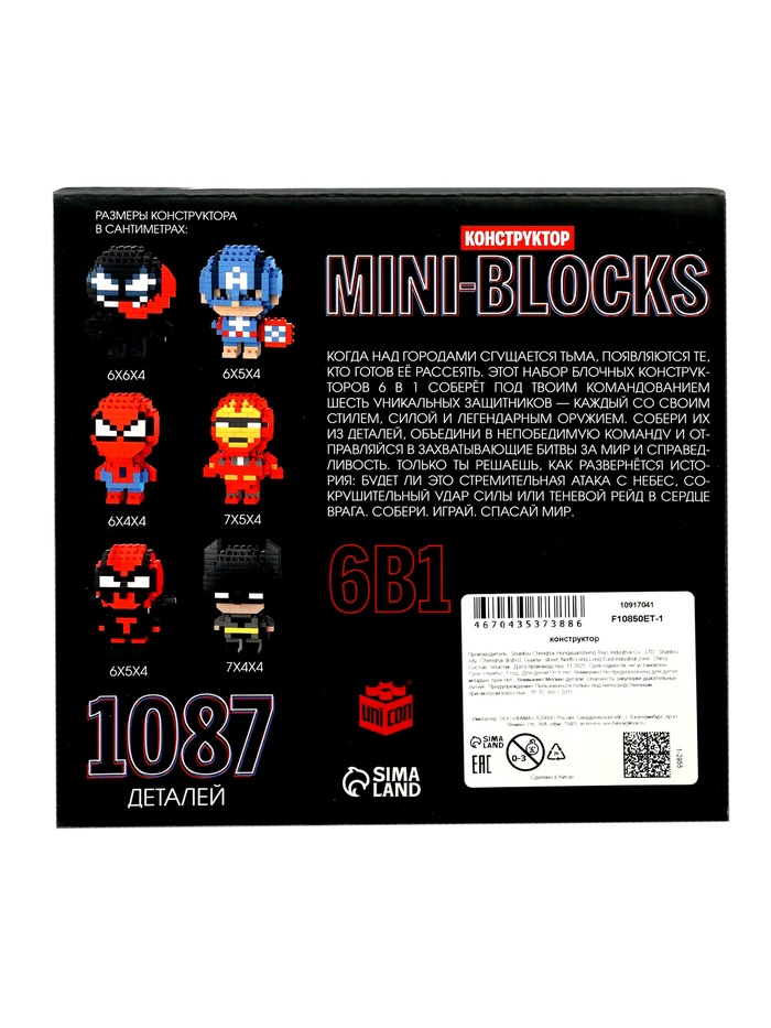 Собери команду героев своими руками! Мини-конструктор “Супергерои” (1087 деталей) — это продвинутый блочный набор для поклонников комиксов и динамичных сюжетов. Формат mini blocks делает каждую модель детализированной и компактной, а сам процесс сборки превращает вечер в полноценный творческий проект.