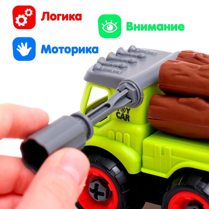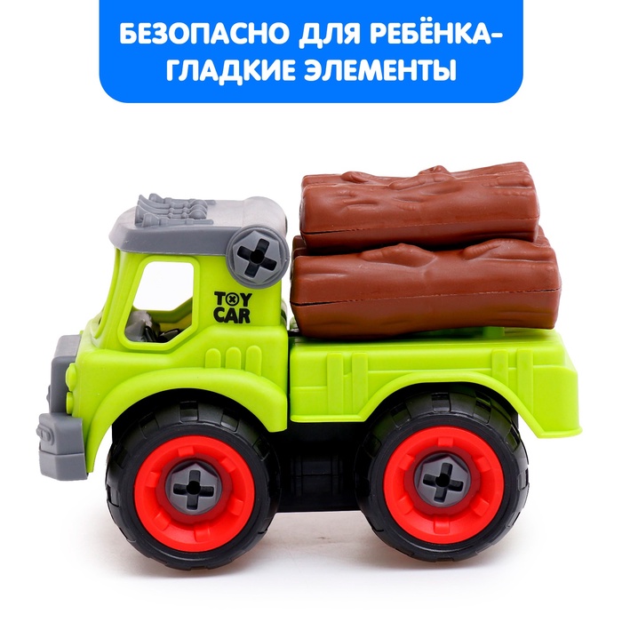Винтовой конструктор «Лесовоз» — это увлекательная яркая игрушка, которая обязательно порадует ребёнка! Ведь малыш самостоятельно соберёт её с помощью инструментов, имеющихся в наборе. Ребёнок получит необходимые бытовые знания, научится закручивать шурупы, болты, шестерёнки, пуговки, а также придумывать новые конструкции.