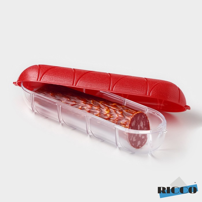 Колбасы различных сортов дольше сохранят свежесть и аромат в специальном контейнере. Плотная крышка дольше сохраняет свежесть колбаски и предотвращает её засыхание. А корпус, повторяющий цвет и фактуру настоящей колбасы и заводскую вязку, стильно впишется на полки в холодильнике хозяйки.