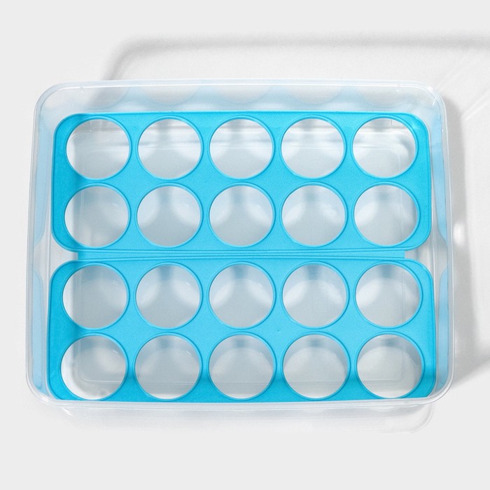 Как сэкономить место в холодильнике и избавиться от лишнего шума? Приобрести наш контейнер для хранения яиц в холодильнике. Органайзер для холодильника имеет 1 уровень, общей ёмкостью – 20 яиц.