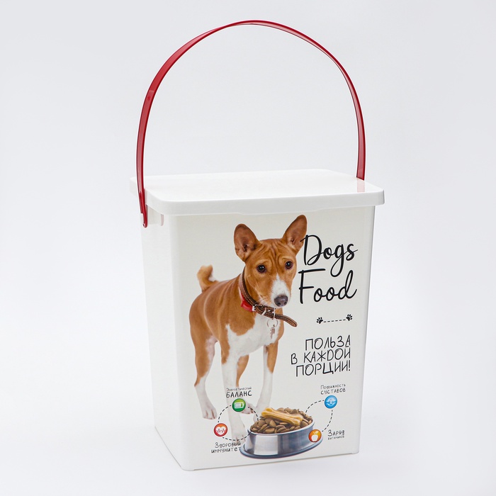 Контейнер имеет герметичную крышку, которая плотно закрывается и защищает корм от влаги, пыли и насекомых. Благодаря удобной ручке и компактным размерам, контейнер легко переносить и хранить в любом месте.