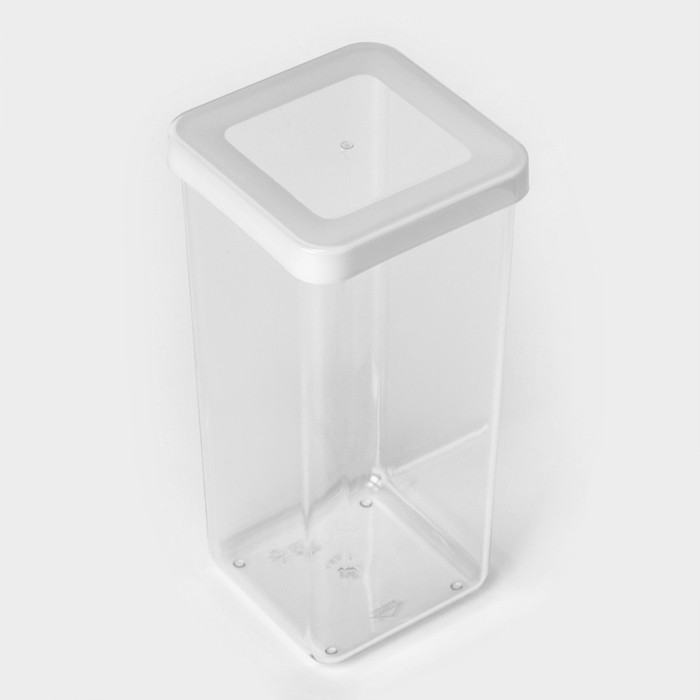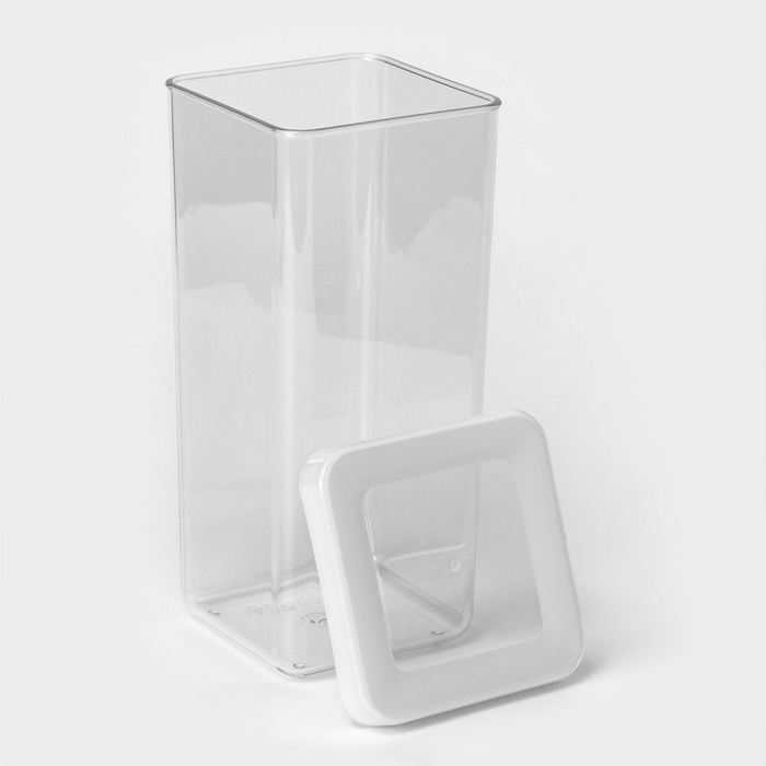 Банка для сыпучих продуктов изготовлена из пластика. Имеет плотно закрывающуюся крышку, которая защищает еду от влаги и посторонних запахов. В ёмкости удобно хранить крупы, специи, макаронные изделия, сахар, муку и бобовые.