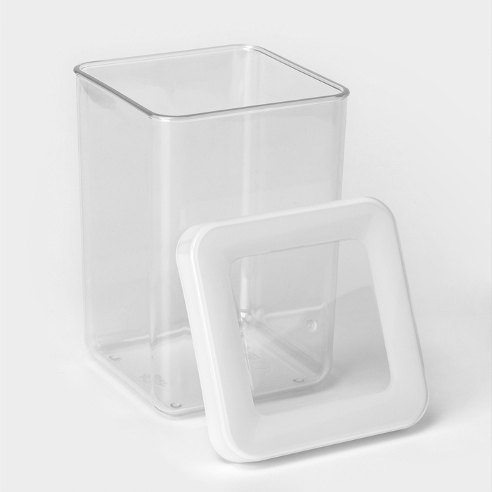 Банка для сыпучих продуктов изготовлена из пластика. Имеет плотно закрывающуюся крышку, которая защищает еду от влаги и посторонних запахов. В ёмкости удобно хранить крупы, специи, макаронные изделия, сахар, муку и бобовые.