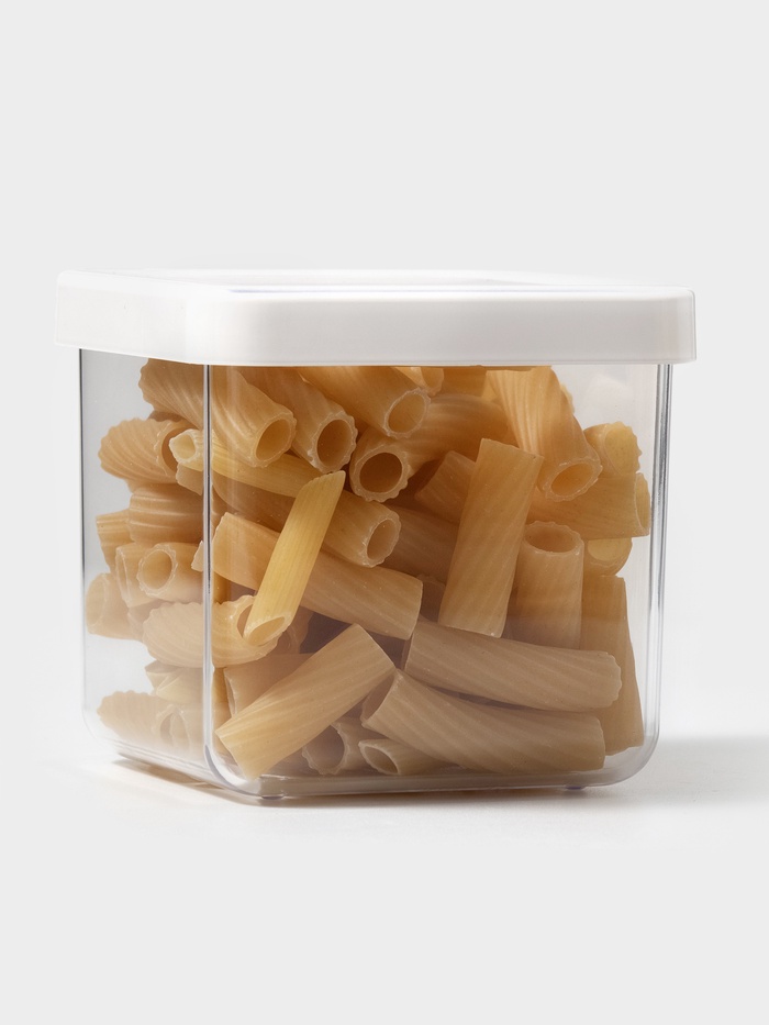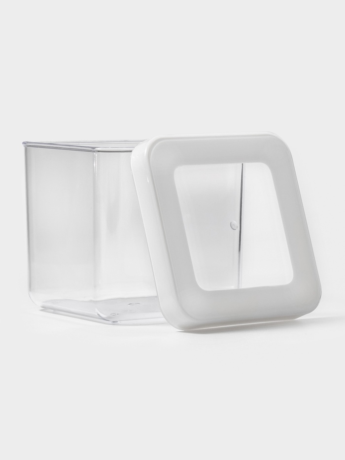 Благодаря прозрачному корпусу вы всегда будете видеть, что находится внутри ёмкости, а также контролировать количество продуктов. На корпусе может быть нанесена мерная шкала, которая поможет вам точно отмерить нужное количество продукта.
