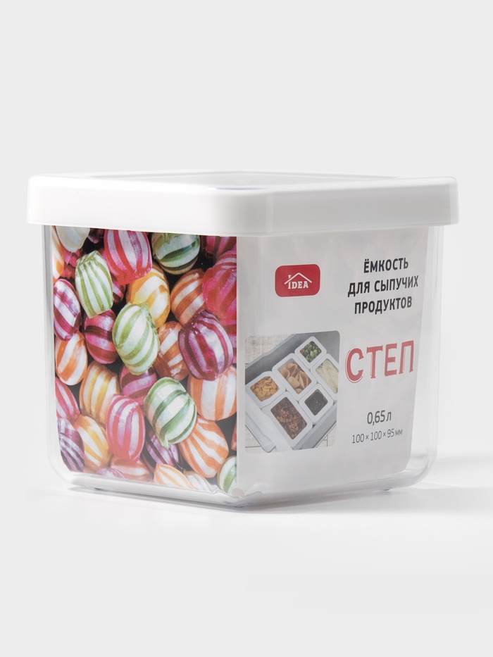 Контейнер для сыпучих продуктов IDEA «Степ», 650 мл, 10×10×9.5, пластик, крышка белая