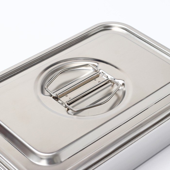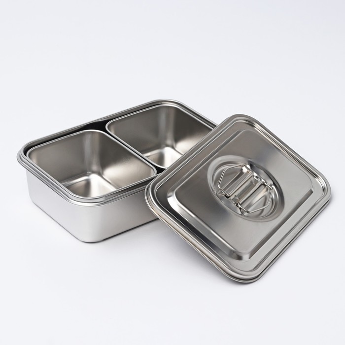 Удобный и практичный контейнер изготовлен из качественной нержавеющей стали. Контейнер имеет 2 секции и предназначен для хранения готовых и сырых продуктов.