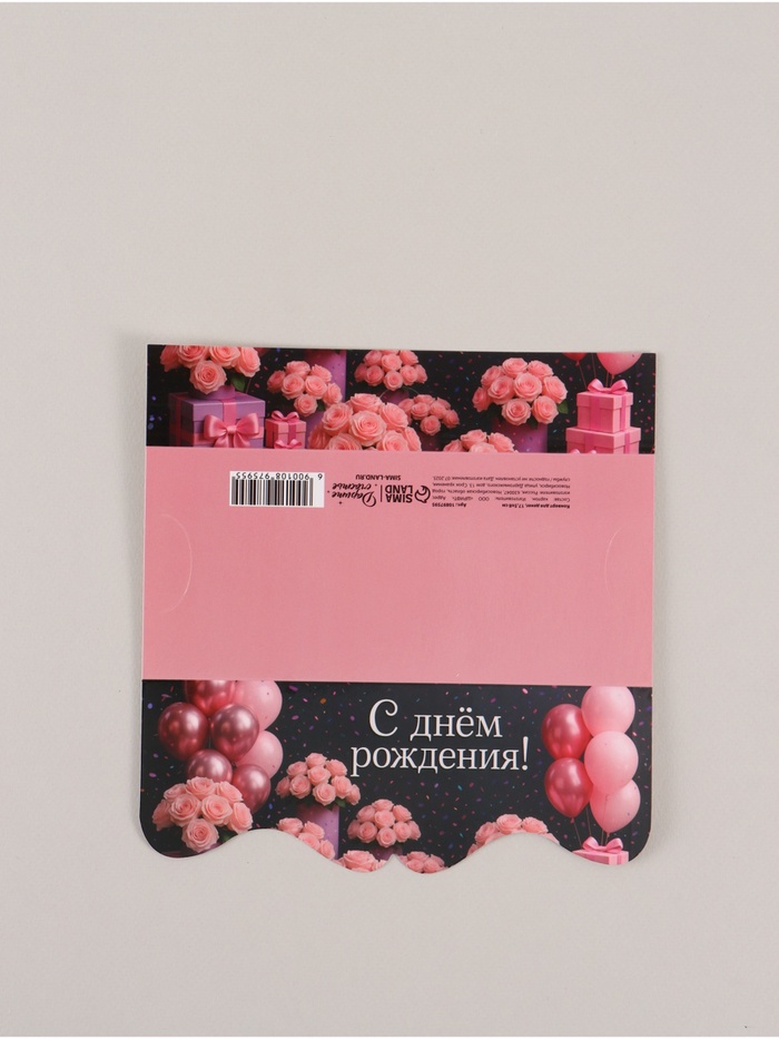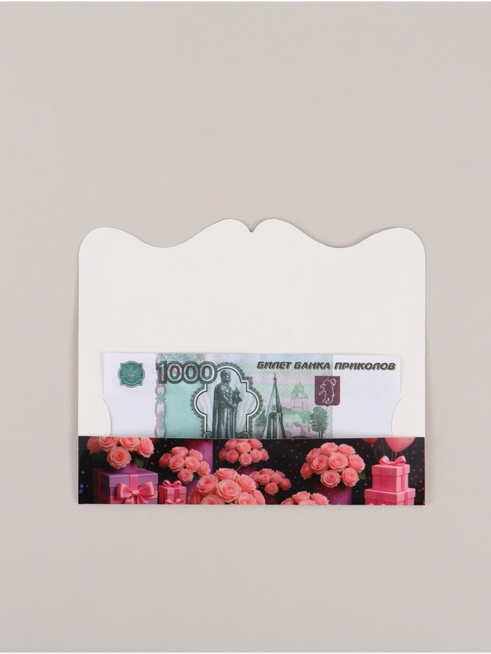 Конверт для денег фигурный «С днём рождения», цветы, 17.5×8 см
