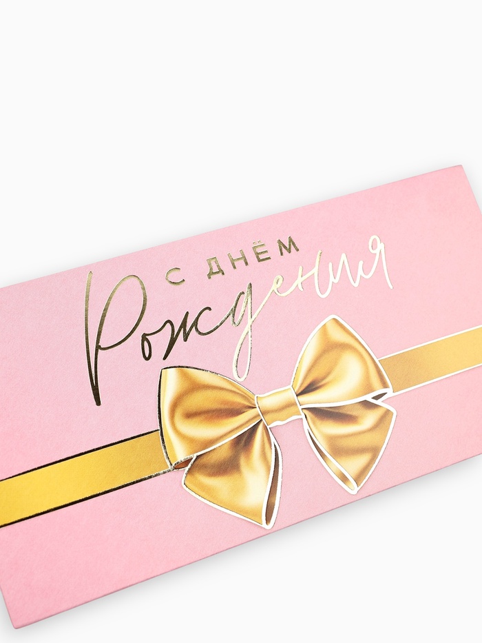 Конверт для денег «С днём рождения», бант, тиснение, 16.5 х 8 см