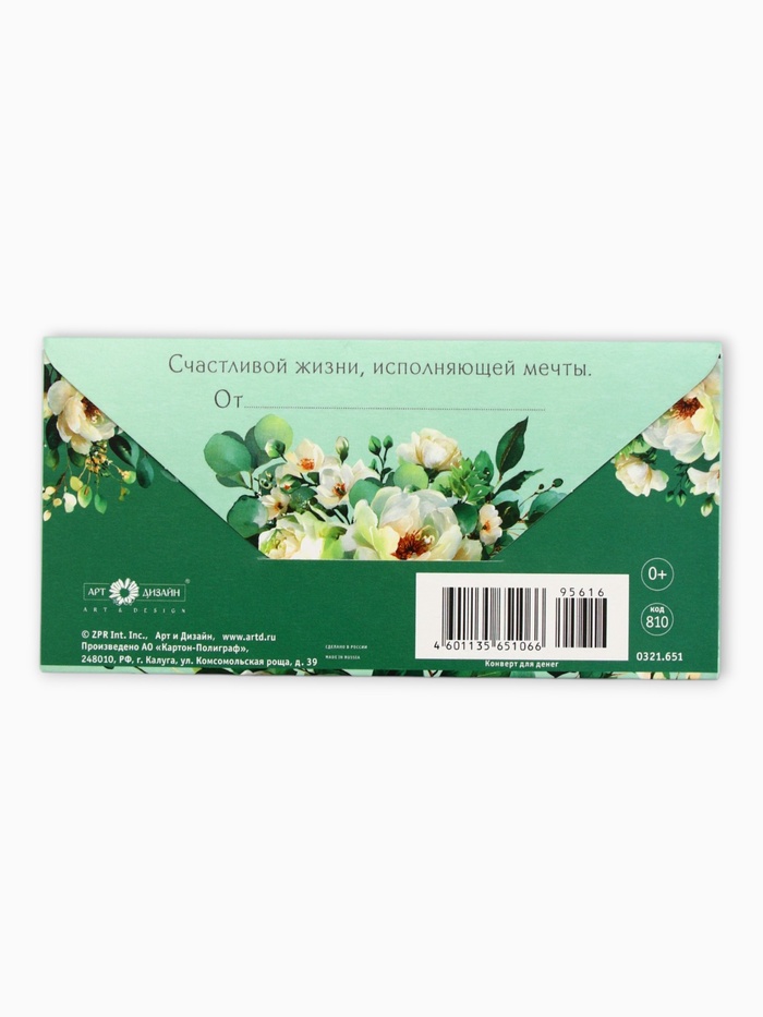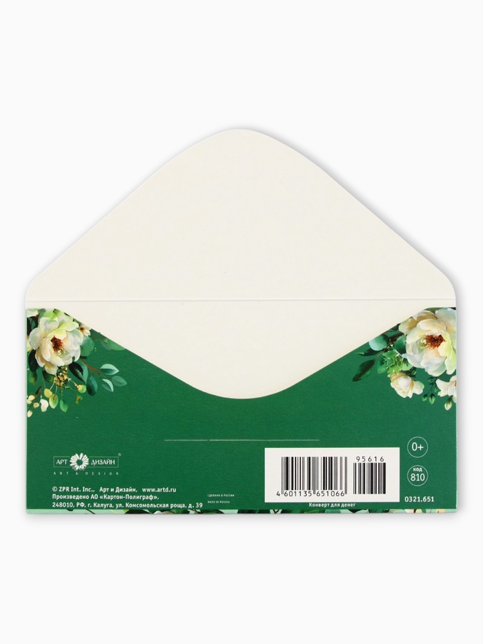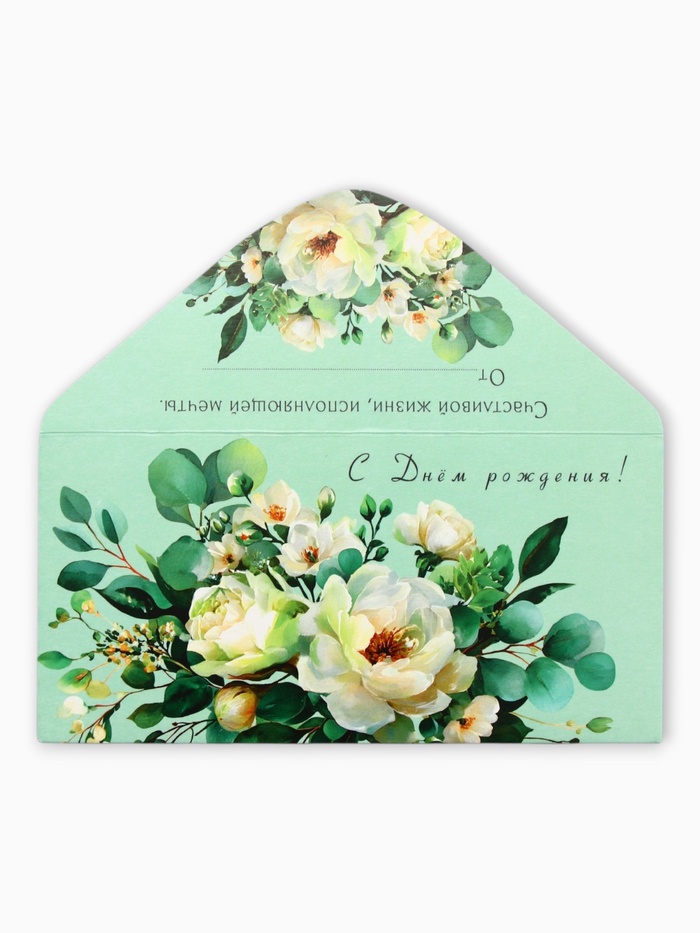 Конверт для денег «С Днем Рождения!», белые цветы, 16,5 х 8 см