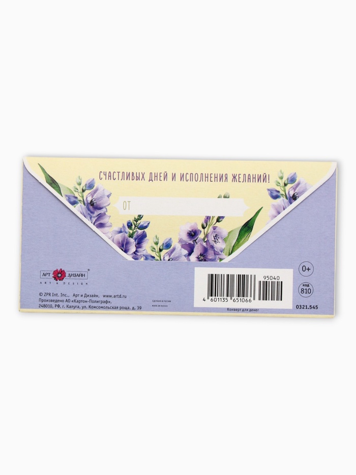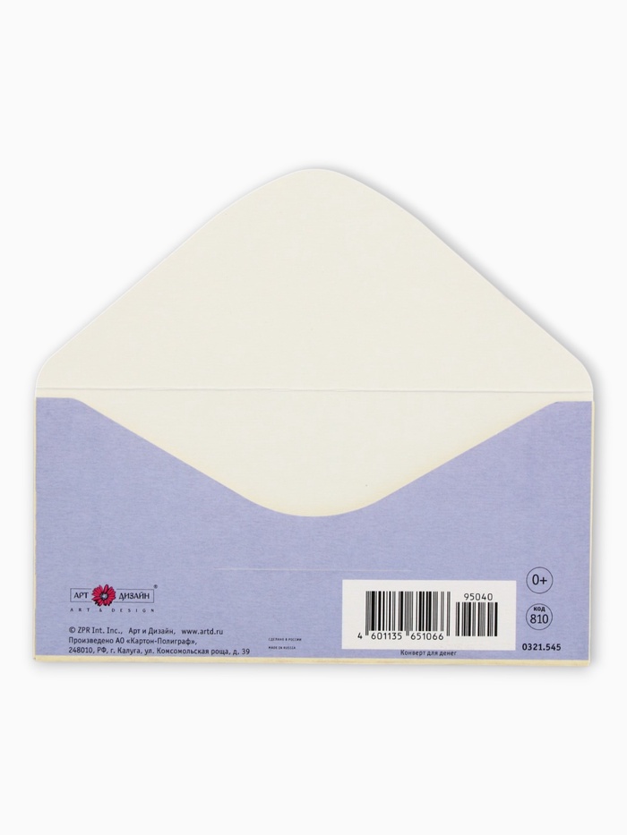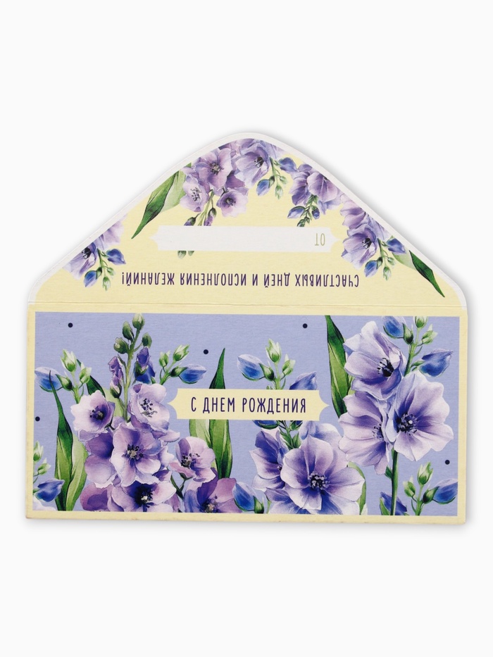 Конверт для денег «С Днем Рождения», бежевый и сиреневый, 16,5 х 8 см
