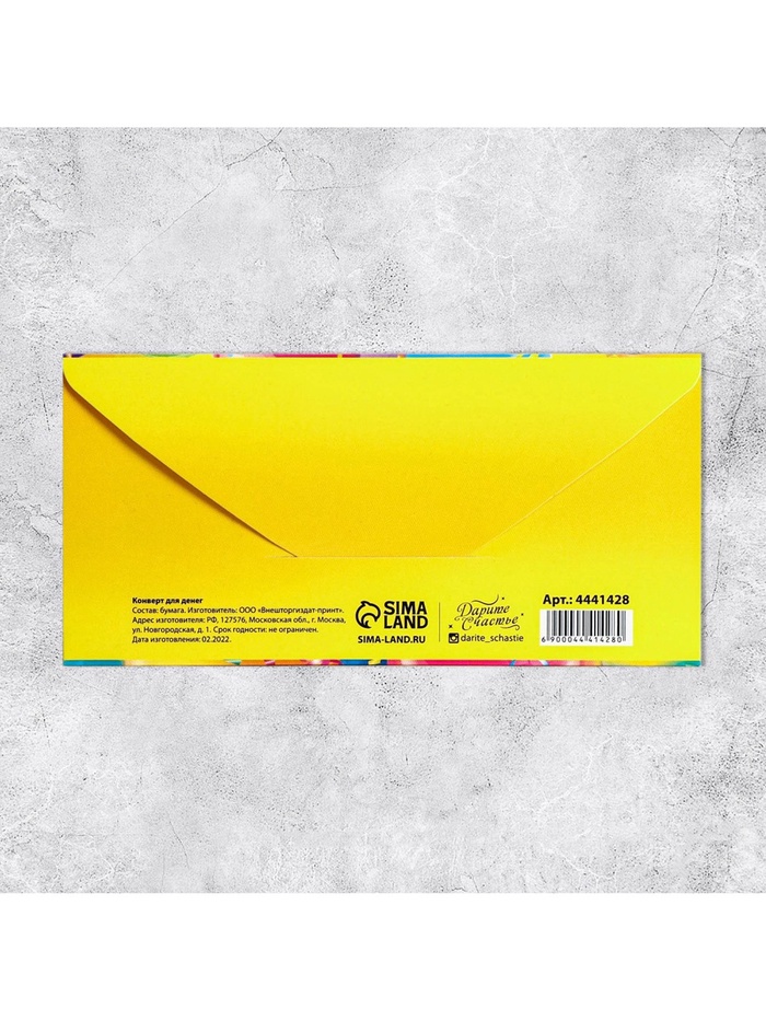 Конверт для денег «С днем рождения», фактурная бумага ВХИ, 16.5×8 см