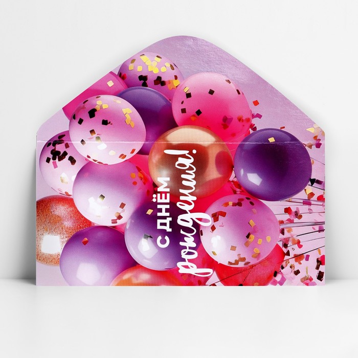 Конверт для денег «С Днём рождения!», шары на розовом, 16.5 х 8 см